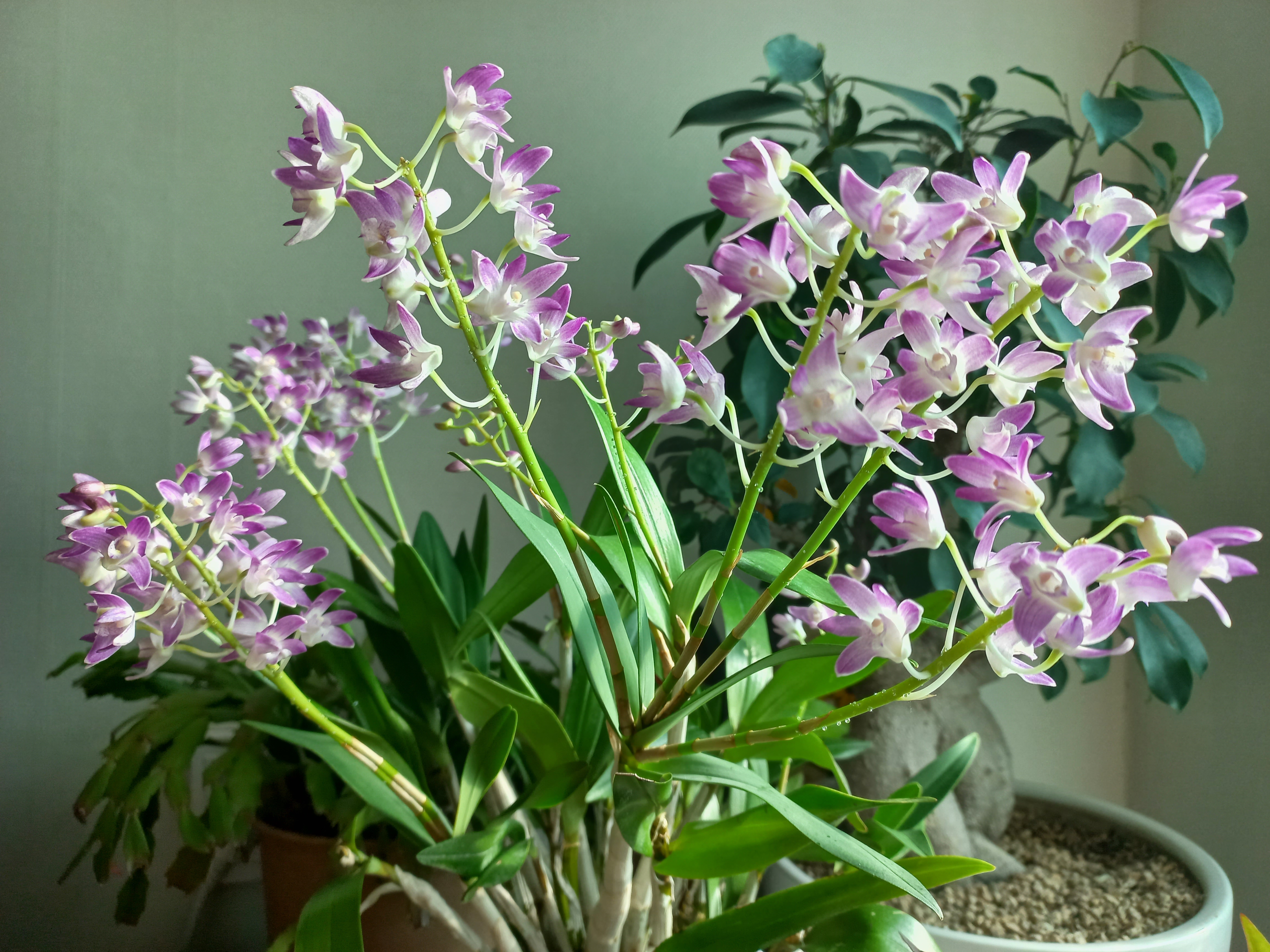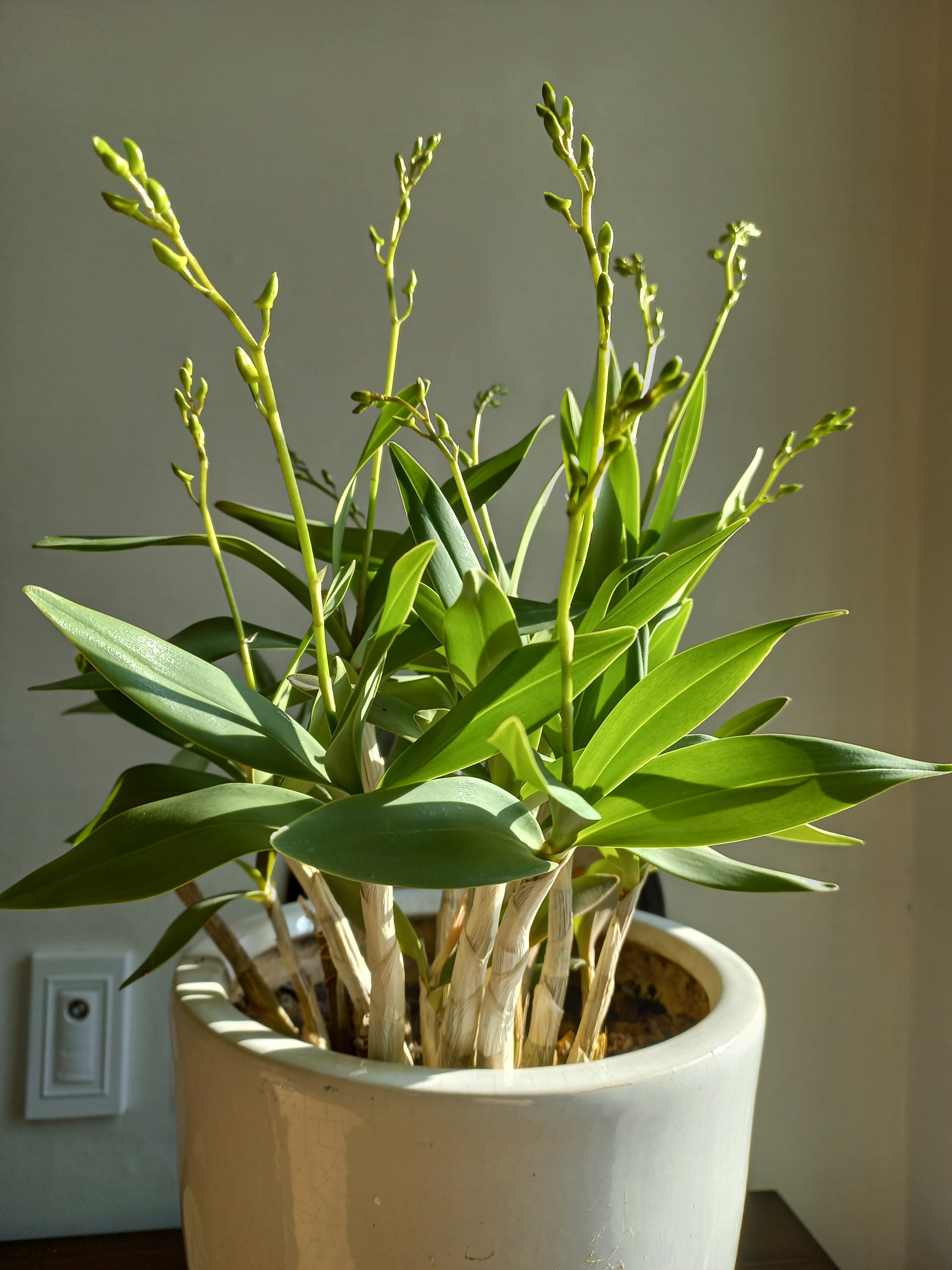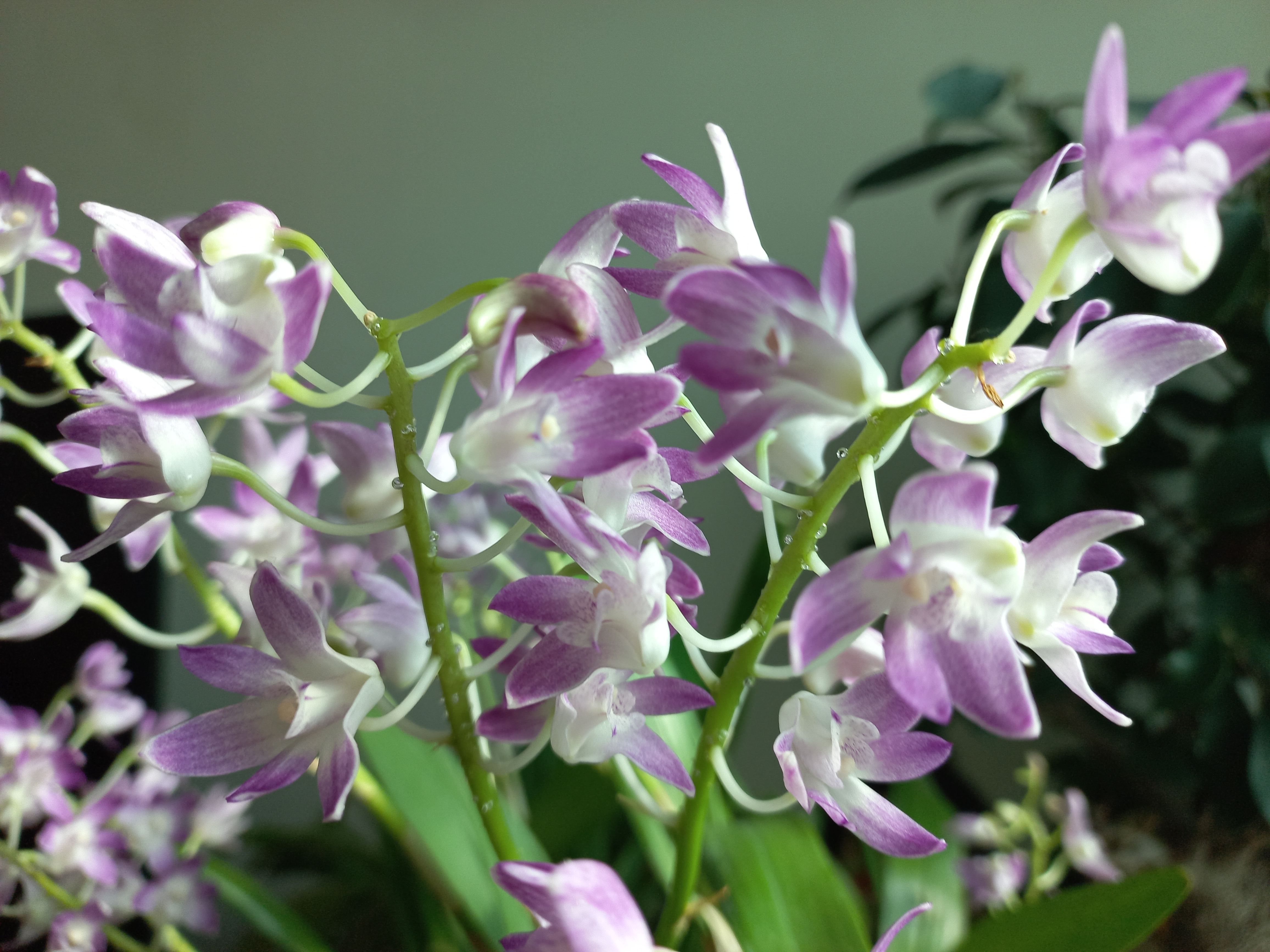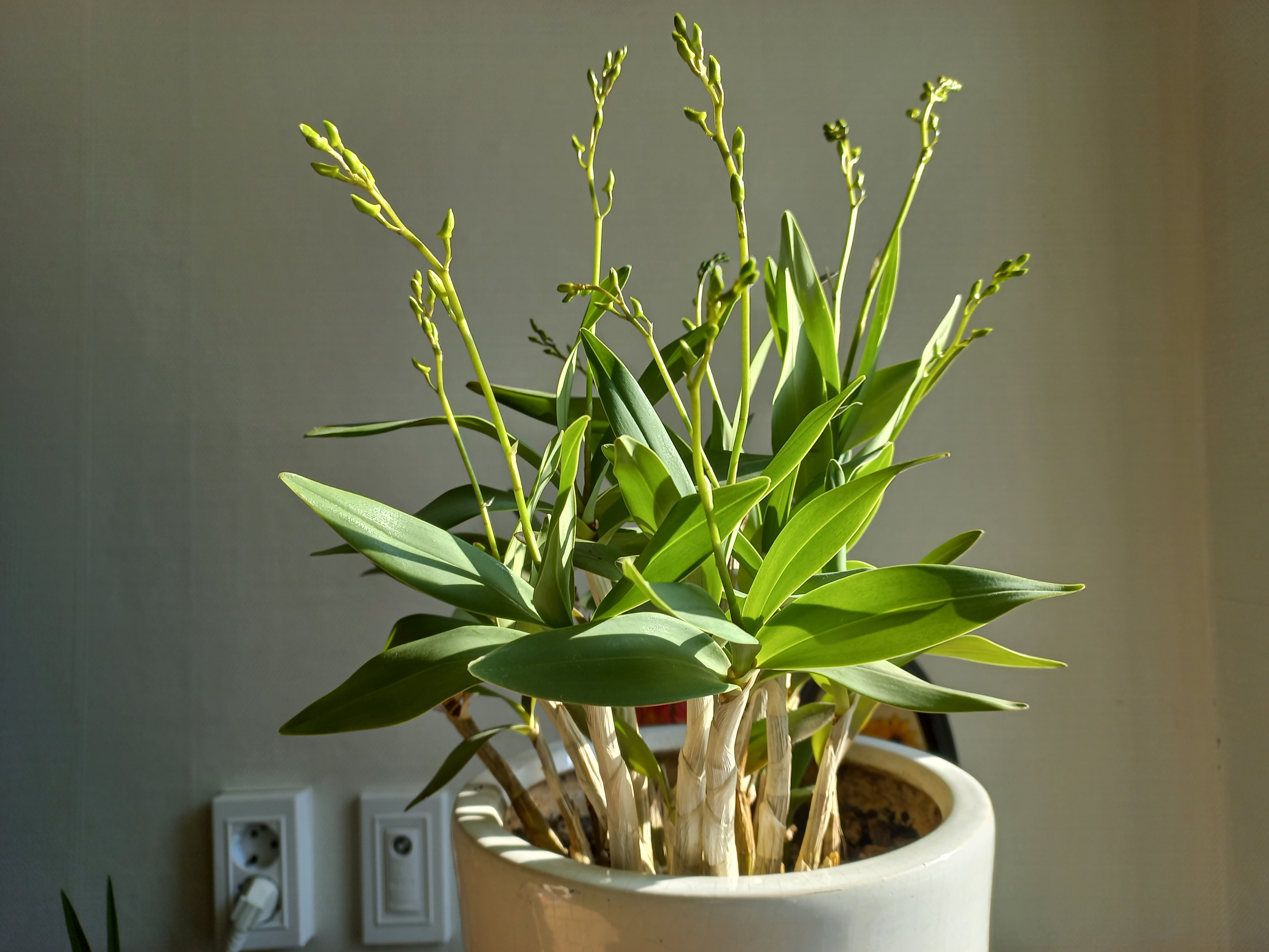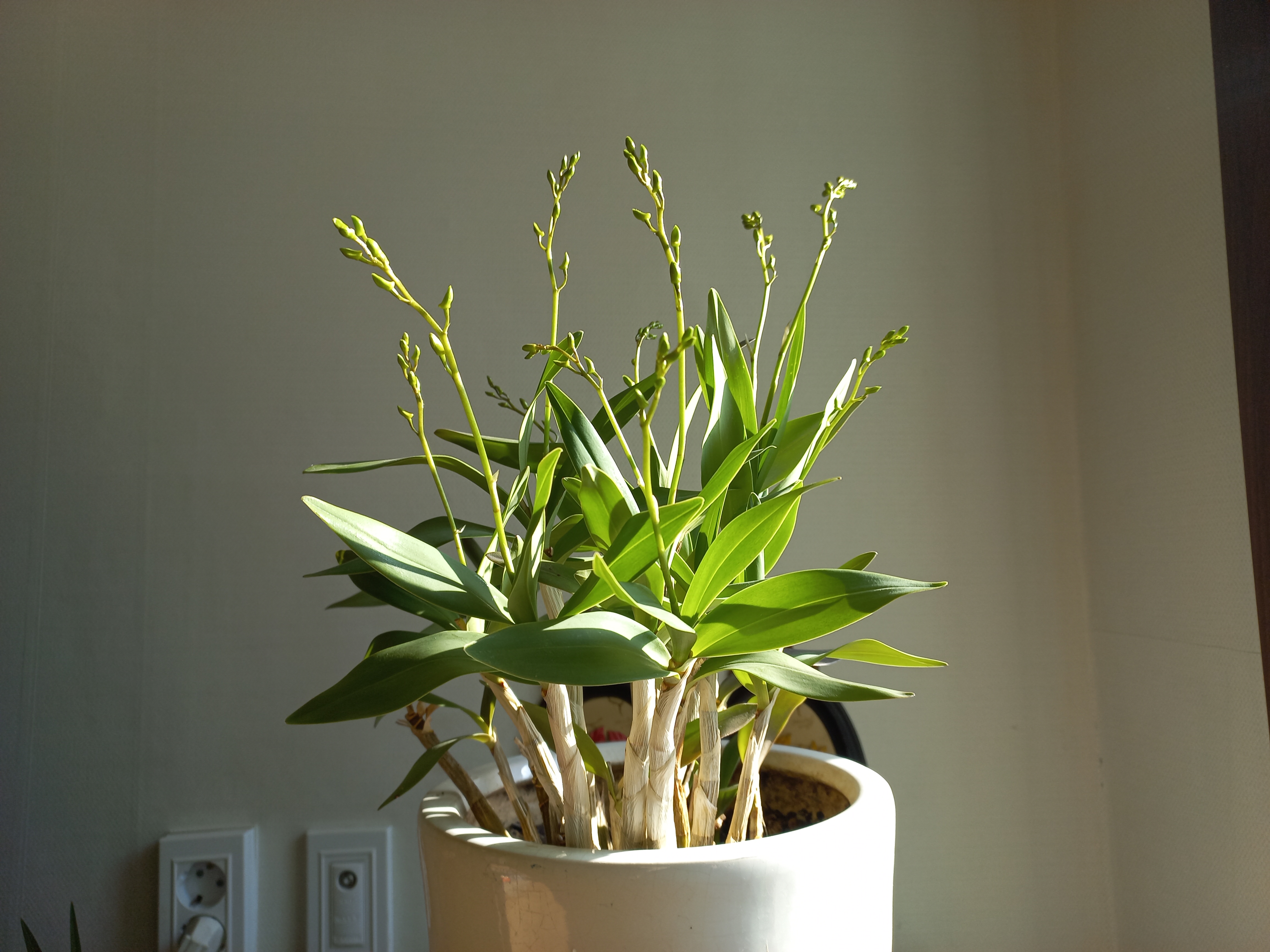 몇년전부터 기르고 있던 흰색 긴기아난 화분을 2021년 봄에 분갈이 하면서 두개 화분으로 번식 시키고, 또 2021년 봄경 화원에서 꽃이 지고 화원 옆에 방치해 놓은 분홍색 긴기아난 1개를 1만원에 구입하여, 흰색 화분 2개, 분홍색 화분 1개, 합계 3개화분을 만들면서 바크(나무껍질)와 난석을 화원에서 구입하고 화분 분갈이 (적은화분)하고 비료등 영양제를 준 후, 여름에는 계속 물을 주며 키우다가 낙엽지는 가을에 물말림(물을 적게주는것)을 하면서 겨울에 저온처리(난 베란다에 내놓았음)하고 보니까 꽃대가 생성되어 있어서 2월 10일경 분홍색 긴기아난 화분을 먼저 실내에 들여와 꽃을 피우고, 3월 초순 흰색 1개를 다시 들여놓아 휜색 긴기아난 꽃을 피웠는데 며칠 더 지나서 3.12일쯤 마지막 화분을 실내로 들여다놓아 2달이상 긴기아난 향기속에 지내게 되었음