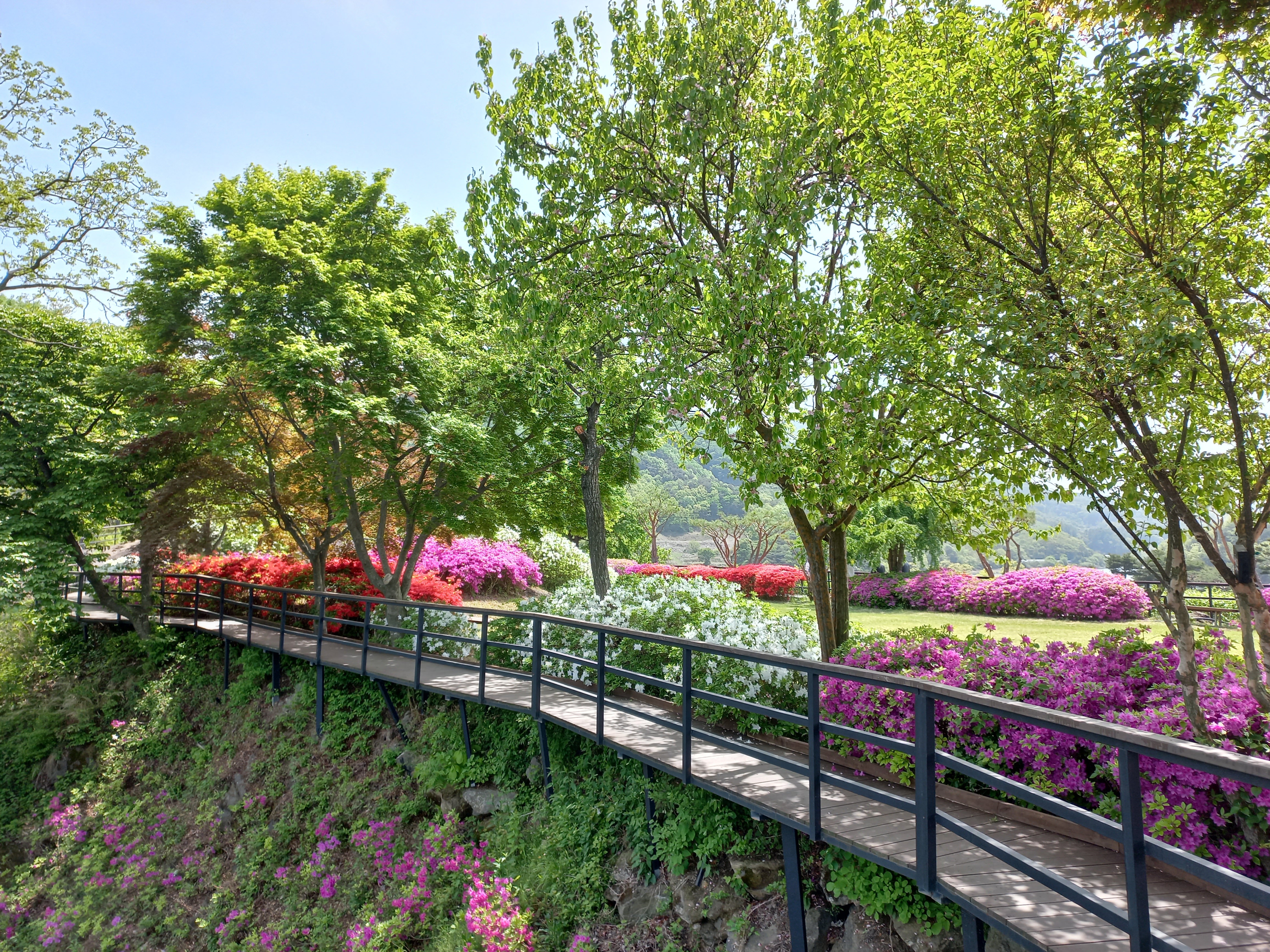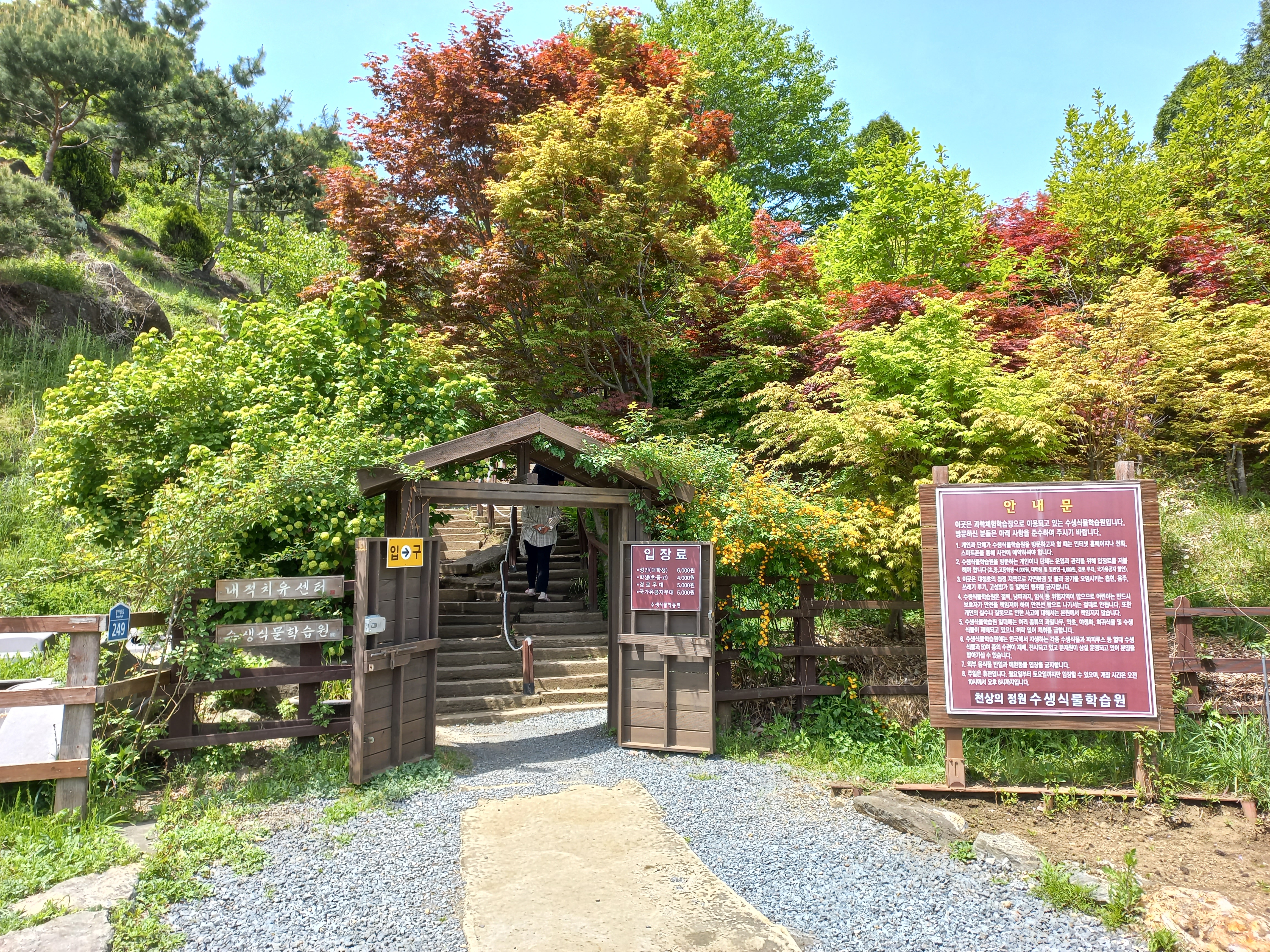 2022. 4.27. 충북 옥천군소재 옥천수생식물학습원. 대전 사람들에게는 어부동이라고 알려진곳으로 약 23~25년전쯤 이곳 어부동 식당에서 점심 식사하고 대청호 양지바른 길을 걷다가 난초를 발견하여 난초따라 산으로 들어갔다가 난초 몇 포기 채집하고 참나무 숲을 내려오다가 산속에 검은집과 비닐하우스가 있는 이곳에서, 나 보다는 나이가 많고 동행 했던 둘째 처남과 비슷한 나이 또래의 땅주인이라는 분이 호숫가 산을 개발중 이었던 이곳에서 삽으로 흙을 퍼 리어카에 실고 있는것을 보고 같이 삽질을 했던 기억이 있는 옥천 수생 식물원.