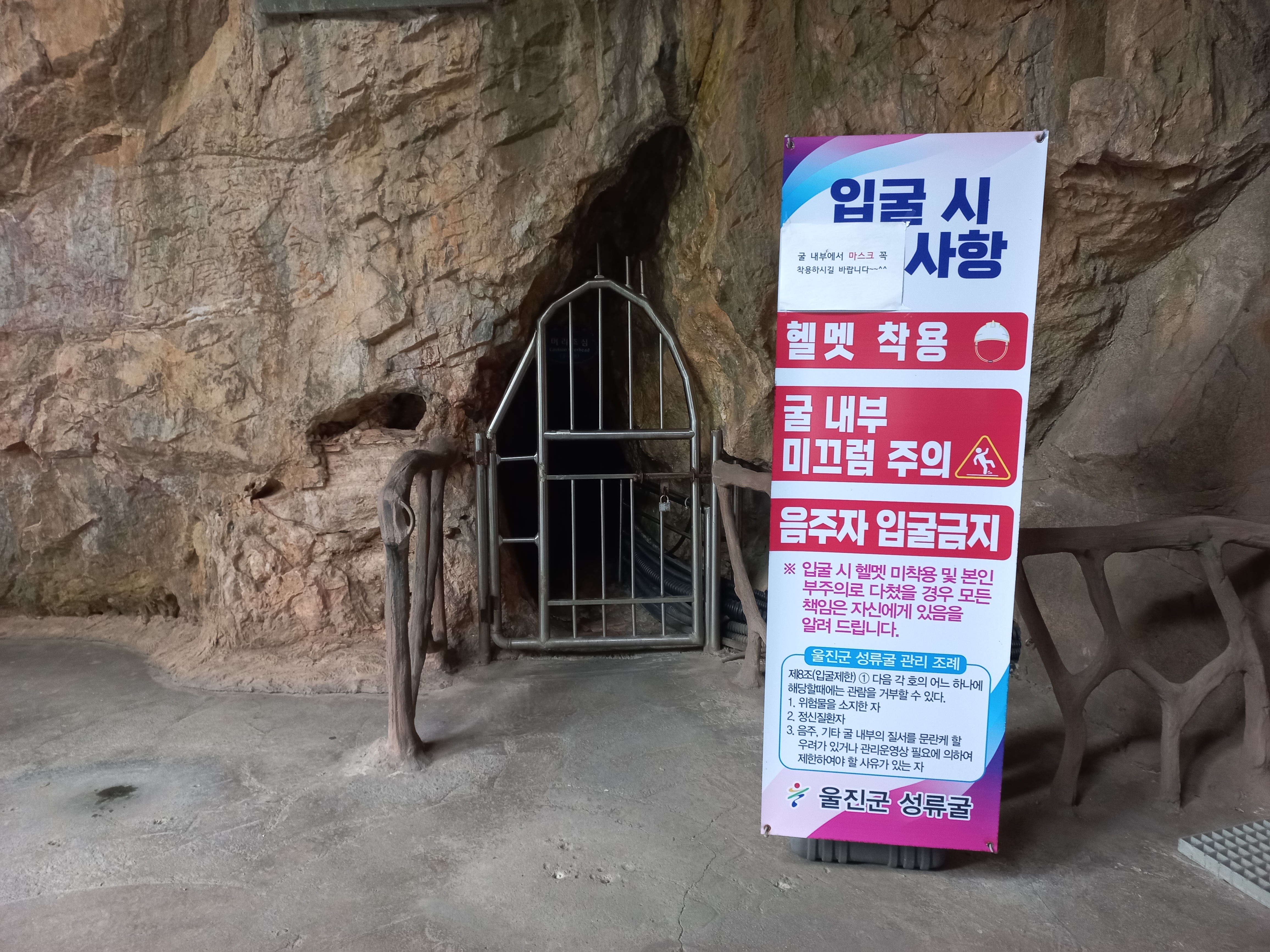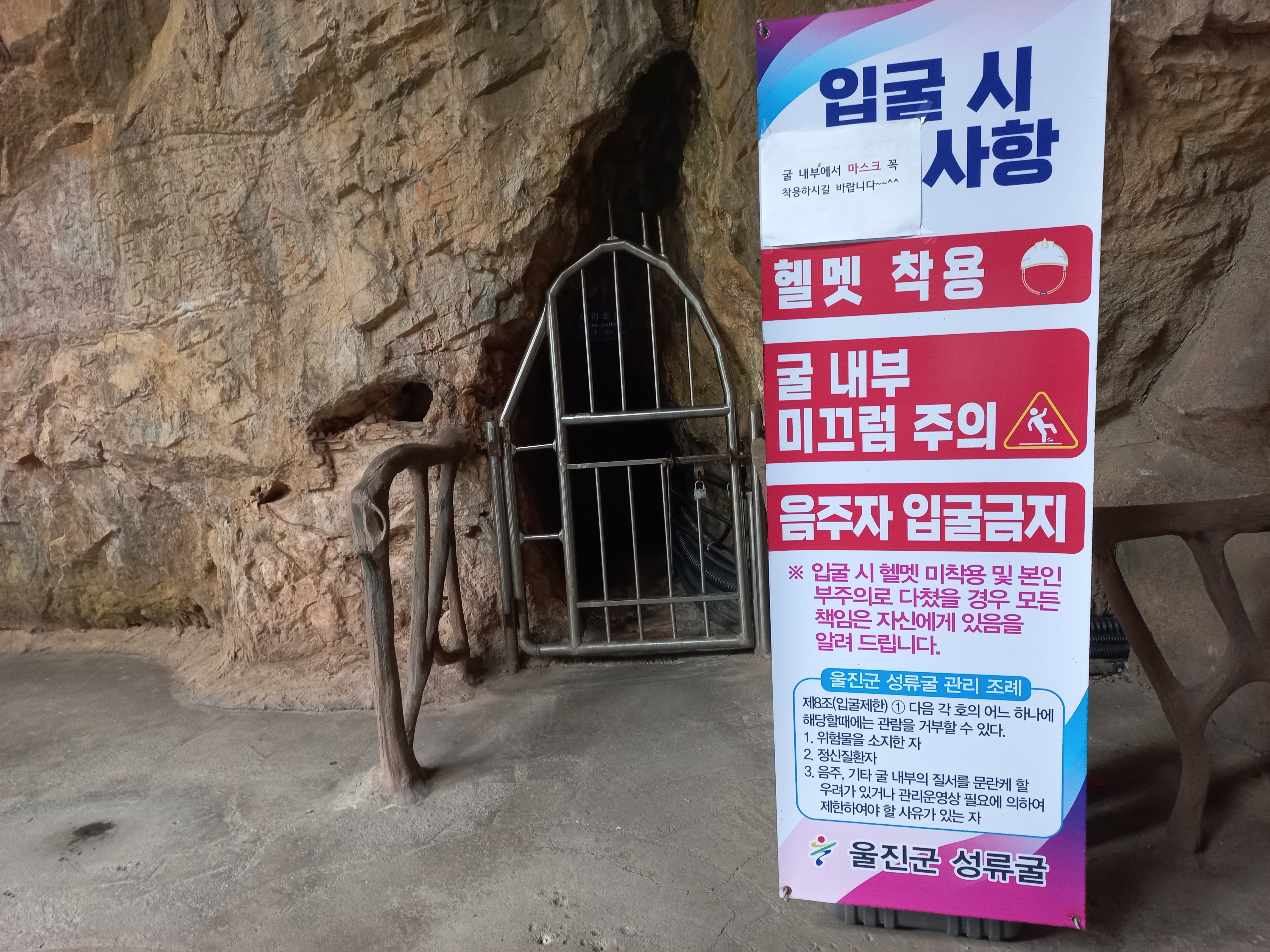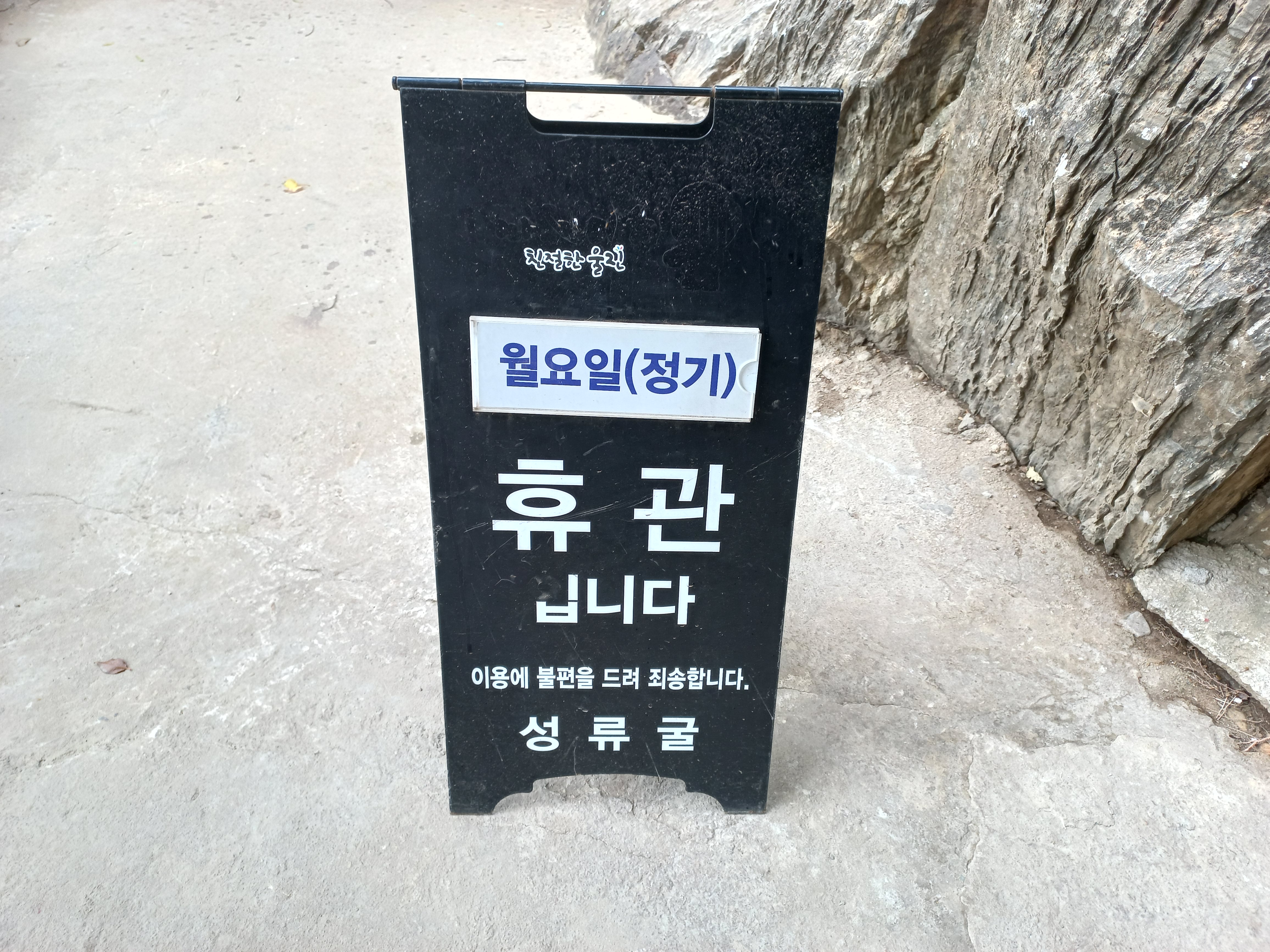 2022. 10. 24. 월요일 대전을 출발할때는 맑은 날씨 였으나 영덕고속도로를 나와 울진을 향하면서 바람불고 빗방울을 보이더니 성류굴에 도착할때는 비가 내리기 시작했음. 성류굴 입구에 들어서니 휴관이라는 팻말이 길을 막아 서있어 성류굴 입구만 둘러 보고 나왔음